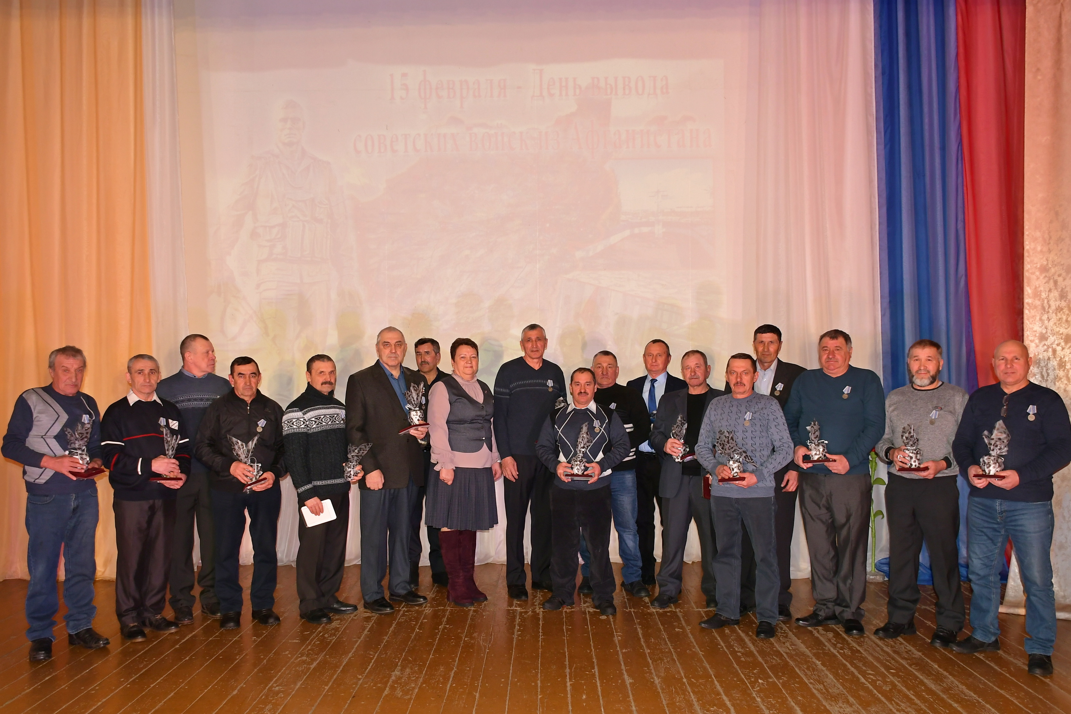 Затем торжество продолжилось в районном Доме культуры. Присутствующих здесь приветствовала глава Лопатинского района Ольга Лапшина. Она поблагодарила воинов-афганцев за гражданский и воинский подвиг, за яркий пример любви к своему народу и преданности Отчизне. По случаю 35-летия вывода советских войск из Афганистана ветераны боевых действий, выполнявшие свой интернациональный долг на территории республики, награждены памятными медалями.