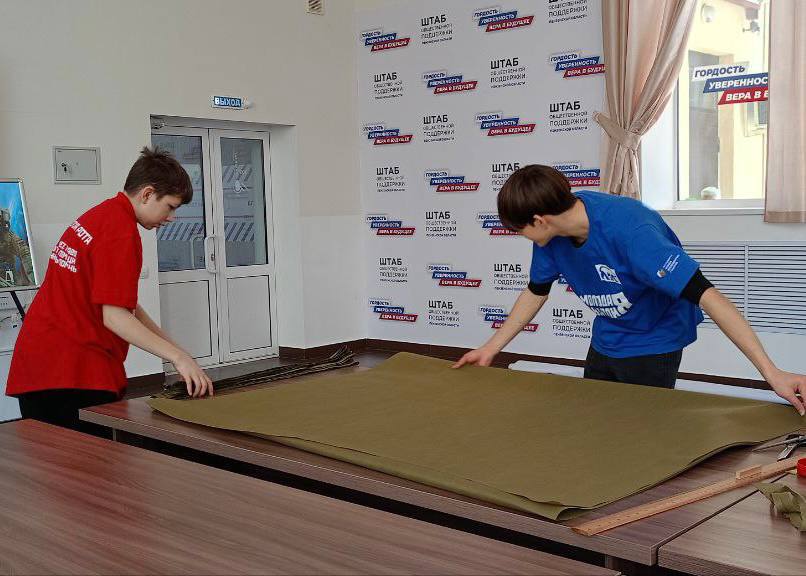 В лофт-пространстве активисты «Молодой Гвардии» и волонтеры приняли участие в создании камуфляжного покрытия для военнослужащих, находящихся в зоне специальной военной операции.