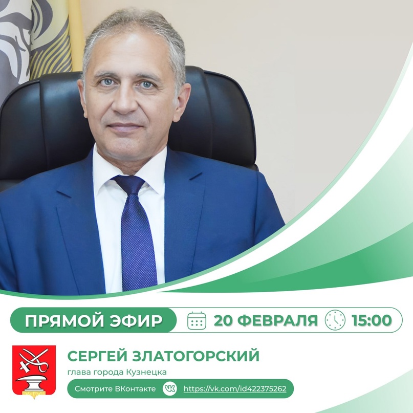20 февраля 2024 года глава города Кузнецка Сергей Александрович Златогорский проведет прямой эфир с жителями города.