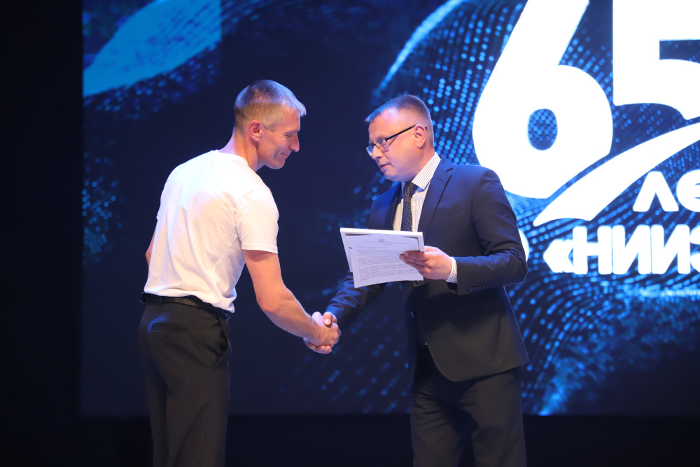 В честь праздника от лица Председателя Пензенской городской Думы Олег Шаляпин вручил благодарственный адрес генеральному директору НИИЭМП Вячеславу Зуеву, а также лучшим сотрудникам предприятия - Благодарности.