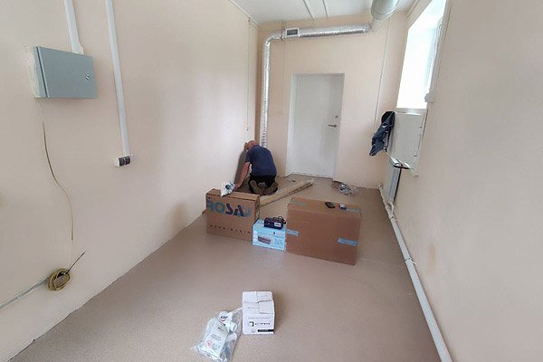 Вскоре в кабинете положат рентгенозащитный линолеум и установят систему водоснабжения.
